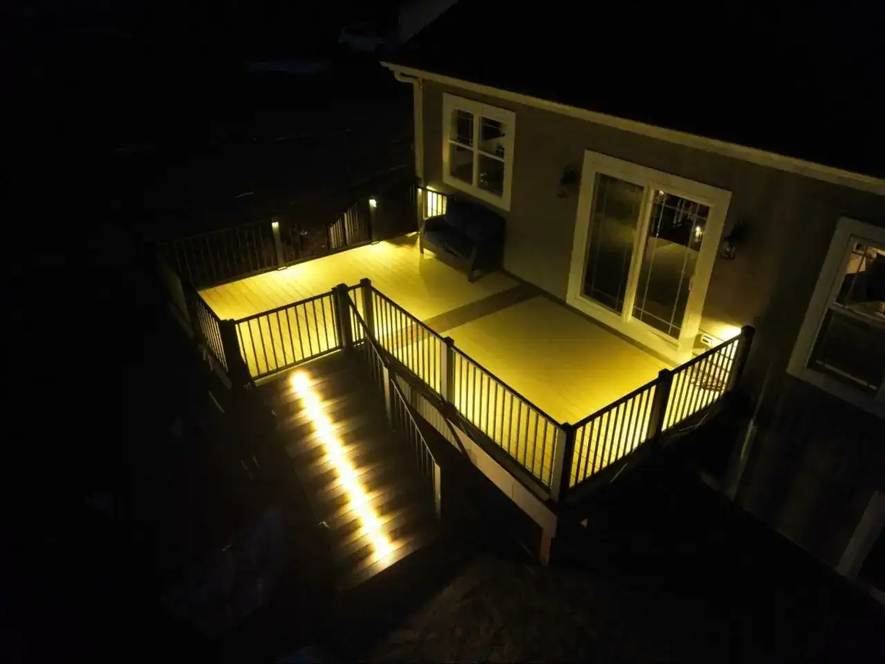 - Lighting – Overhead fixtures, string lights, wall sconces, or step lighting